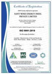 Specimen Certificate of ISO 9001:2015